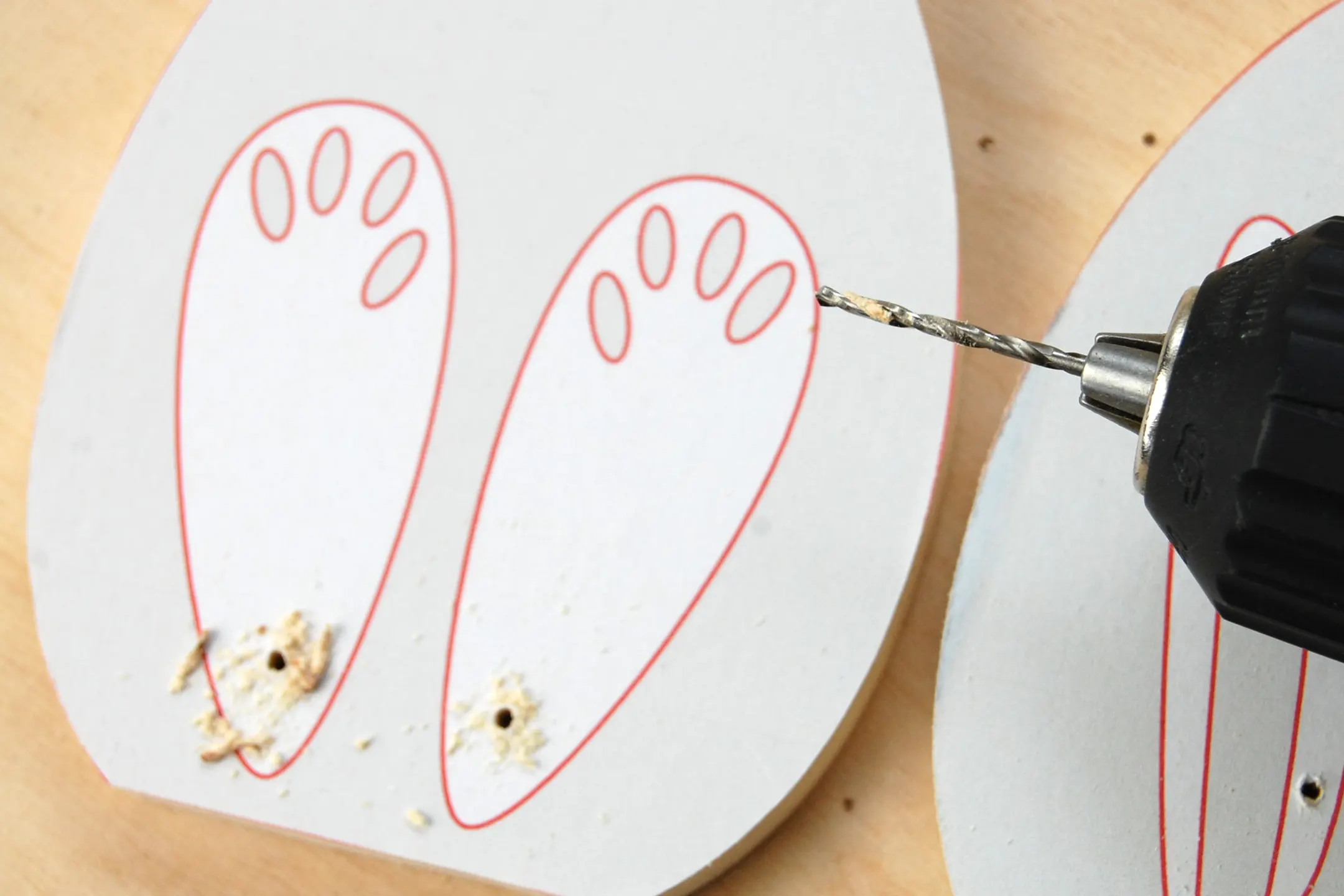 In dieser Laubsägevorlage für Ostereier verbergen sich Ohren, Schnute, Pfoten und Körper des Osterhasen. Sägen auch Sie diese moderne Osterdekoration aus Sperrholz für Ihr Zuhause.