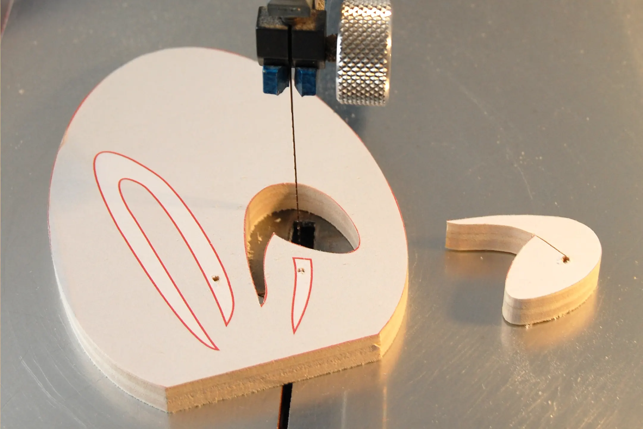 Mit dem rückstandsfrei wiederablösbaren Vorlagenpapier kannst Du Deine gedruckte Vorlage direkt auf das Holz kleben und noch schneller mit dem Sägen beginnen.