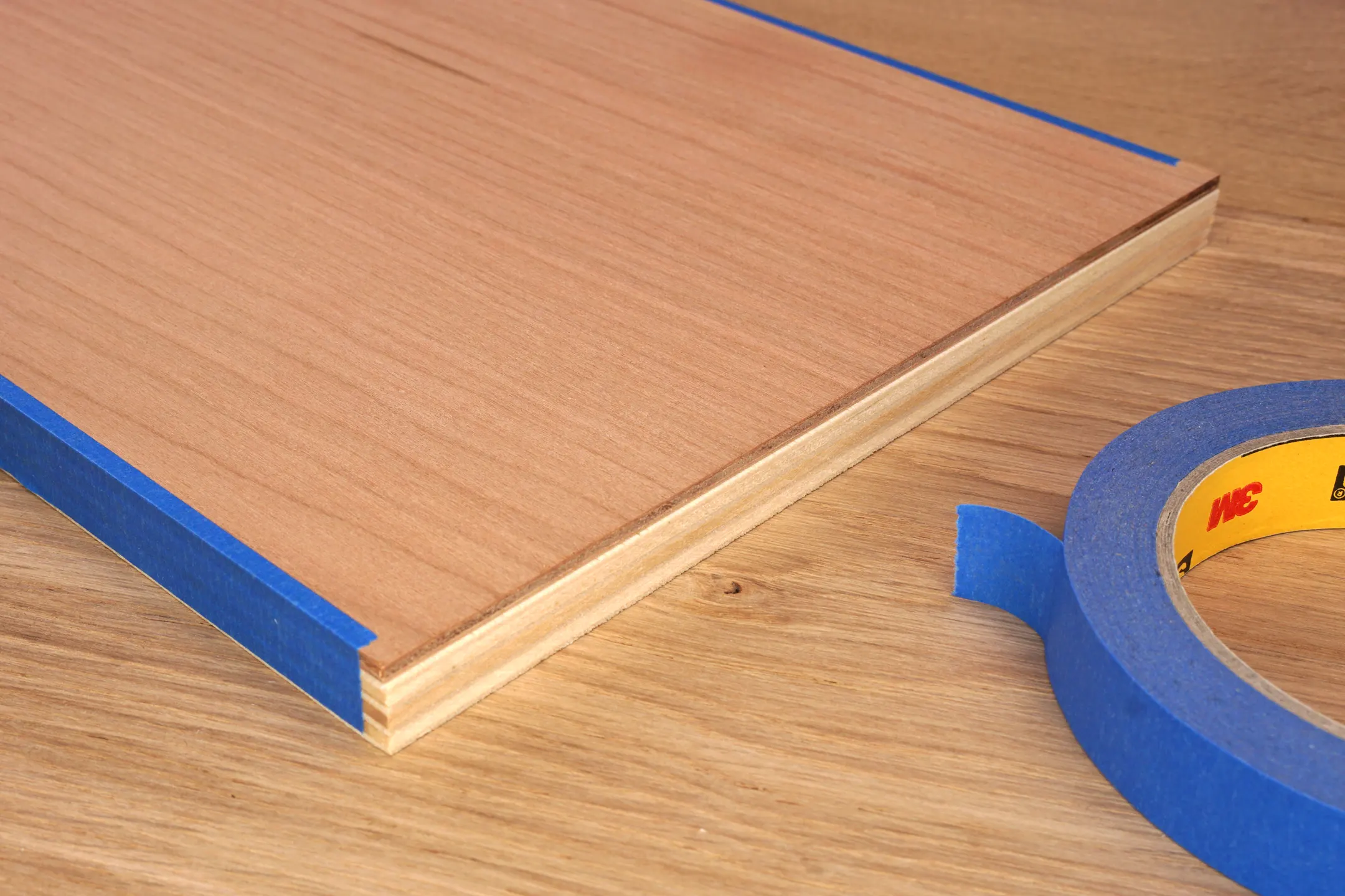 Abdeckklebeband für den Schutz des Holzes beim Aufkleben der Vorlagen. Dieses Spezialklebeband kann selbst nach Tagen rückstandlos abgezogen werden, ohne Holzfasern aus der Oberfläche zu reißen.