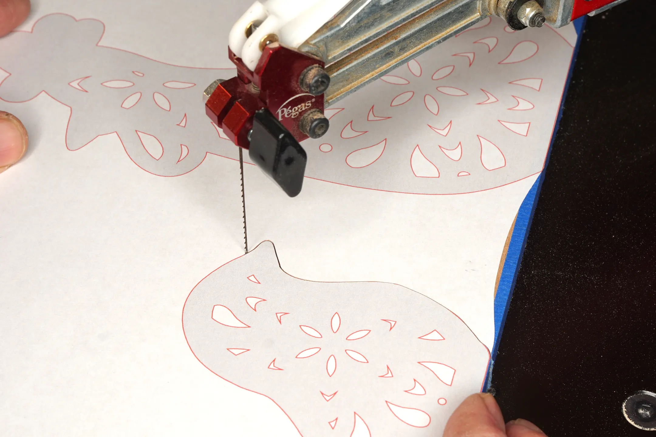 Mit dem rückstandsfrei wiederablösbaren Vorlagenpapier kannst Du Deine gedruckte Vorlage direkt auf das Holz kleben und noch schneller mit dem Sägen beginnen.