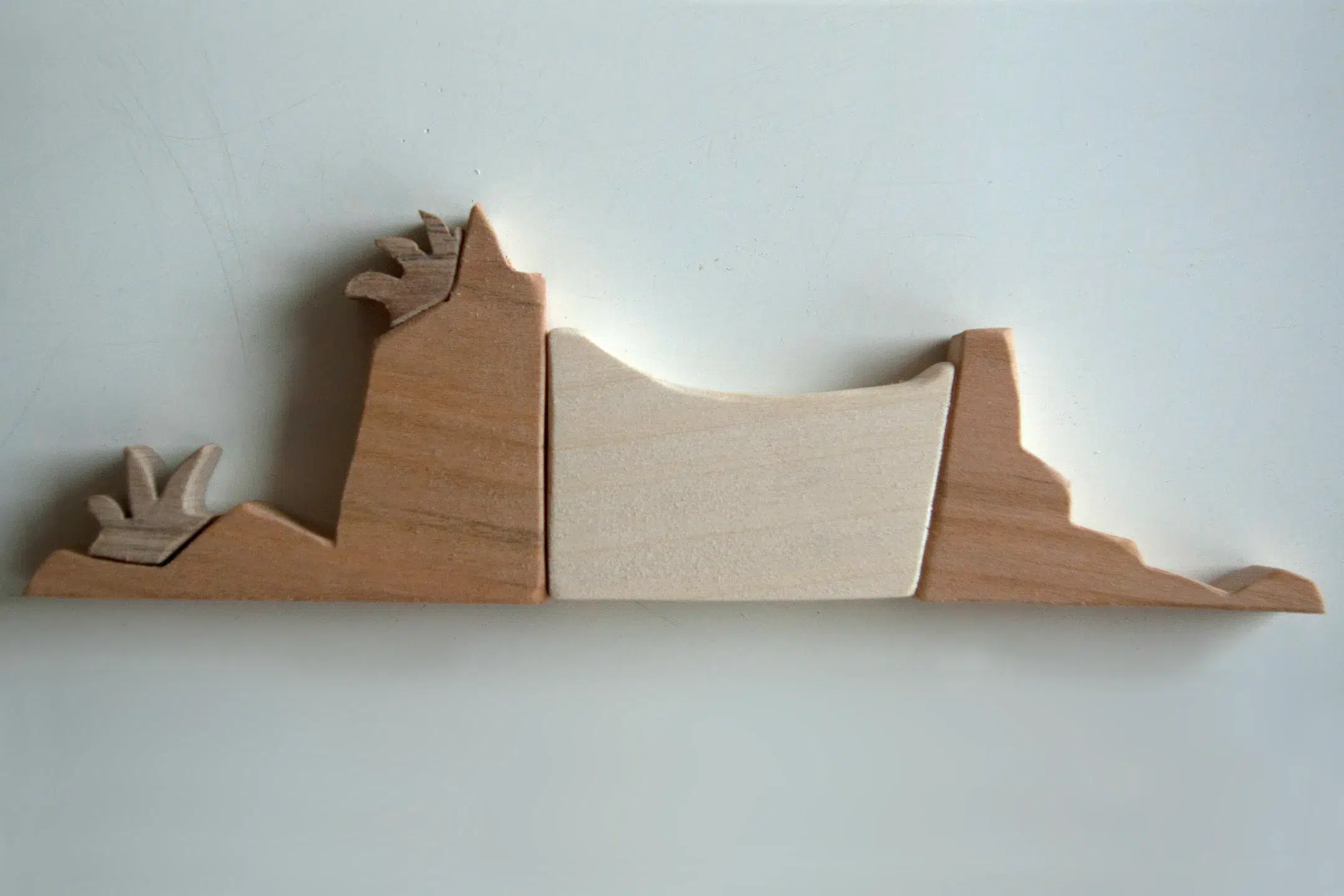Hinter dieser Hügellandschaft verbirgt sich sowohl ein Adventskalender sowie eine moderne Krippenszene. Anleitung und Laubsägevorlage von Christoph Langeder.