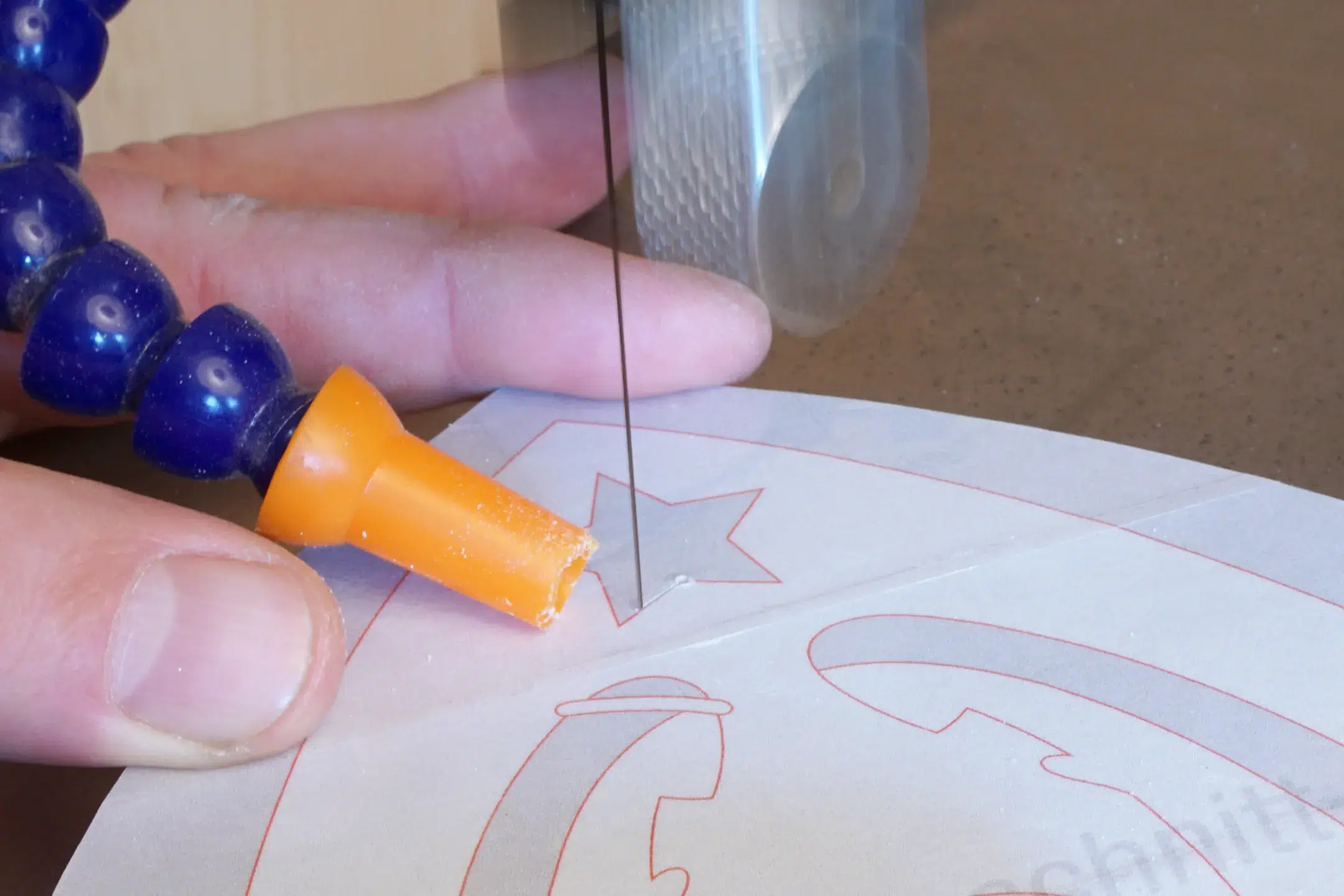 Mit diesem professionellen Abdeckklebeband kann das Werkstück vor Kleberrückständen geschützt werden. Das aufwendige Herausschleifen der oftmals hartnäckigen Verschmutzungen entfällt somit. Vorgeschliffene Sperrhölzer und Massivhölzer werden flächig mit dem Blue Tape überzogen und erst in der zweiten Schicht wird dann die Papiervorlage z. B. mit Sprühkleber oder Klebestift aufgeklebt. Nach dem Sägen des Motivs lässt sich das Blue Tape samt Papiervorlage rückstandlos vom Holz abziehen.